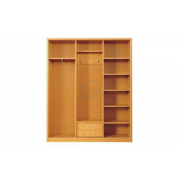 Прихожая Марио эта узкая прихожая, созданная в едином модуле, рассчитана на небольшие помещения – ее глубина составляет всего 42 см. Состоит она из шкафа-купе с двумя дверцами, за одной из которых, зеркальной, скрываются выдвижная штанга и полка, другая дверь прячет 6 полок. В центре модуля находится открытая вешалка с двумя ящиками внизу. Выпускается мебель «Марио» в цветовой гамме «ольха», что придает помещению тепла и света.