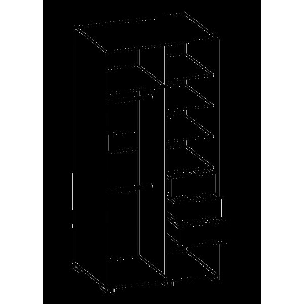слева- сверху полка, 2 штанги, справа- 3 полки, 3 ящика.