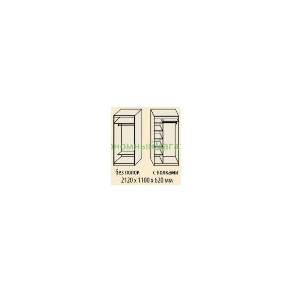 Характеристика: Шкаф-купе разделен на штангу и полки для белья, которые позволят разместить все личные вещи по местам. Шкаф-купе можно заказть с зеркалом или без зеркала. В серии шкаф-купе 1100 предусмотрена конструкция с полками.