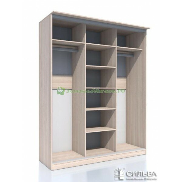 Шкаф-купе комбинированный с одной глухой дверью и двумя зеркальными, от производителя Сильва мебель.