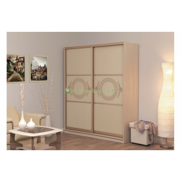 Дверь №18(876) профиль:"Золото матовое" Стекло: Планилак бежевый/рисунок золото(2шт.) - 1шт. - 8230рублей.