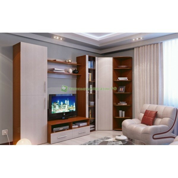 Угловая гостиная, корпус выполняется в цвете — вишня барселона, фасады — дуб кремона.